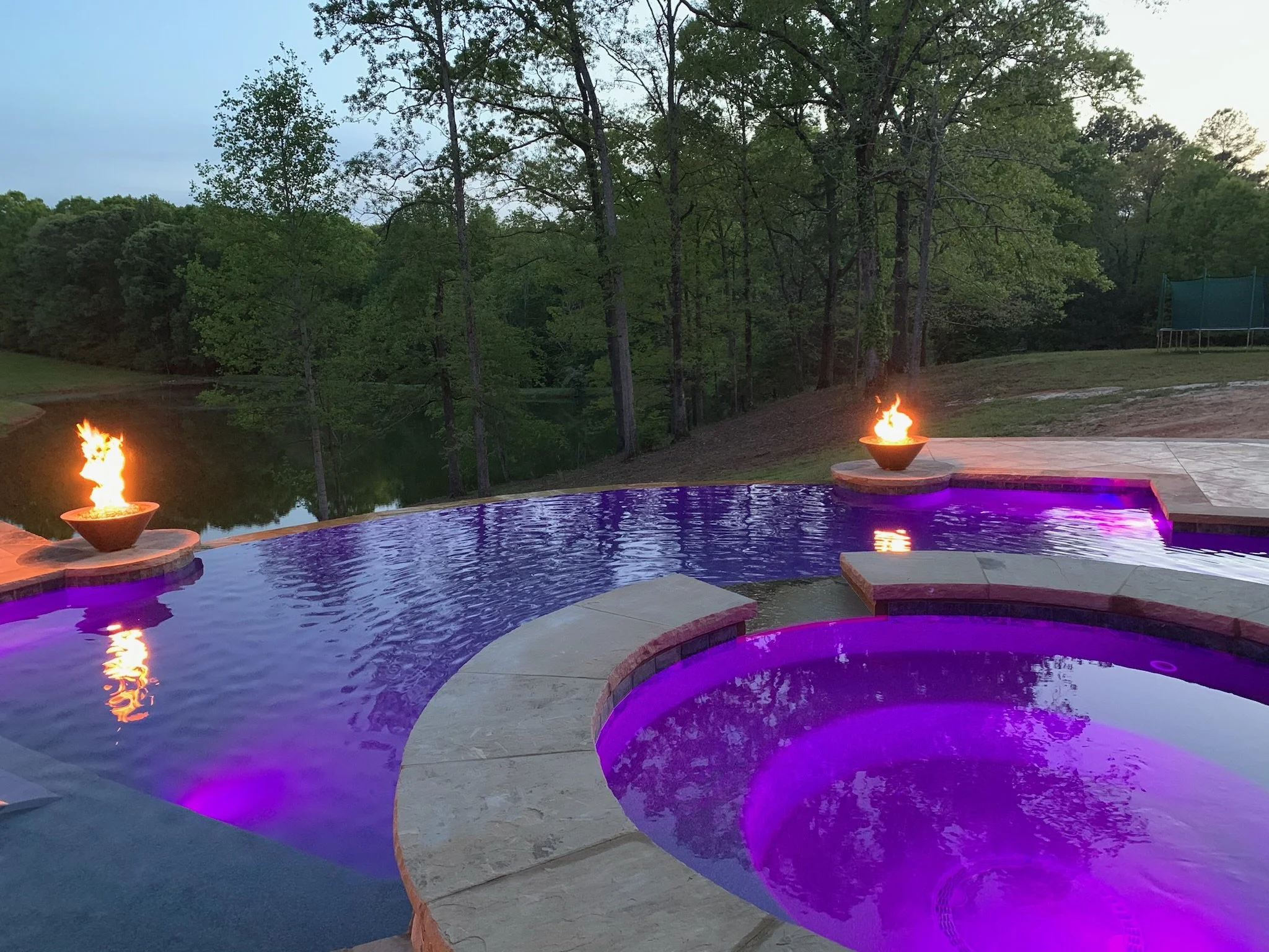 Custom water features add a dynamic and visually striking element to any pool. From cascading waterfalls and gentle fountains to dramatic sheer descents, these water features can be customized to fit your pools design and your aesthetic preferences. Each feature is designed to integrate seamlessly with your pool, enhancing both its beauty and ambiance.