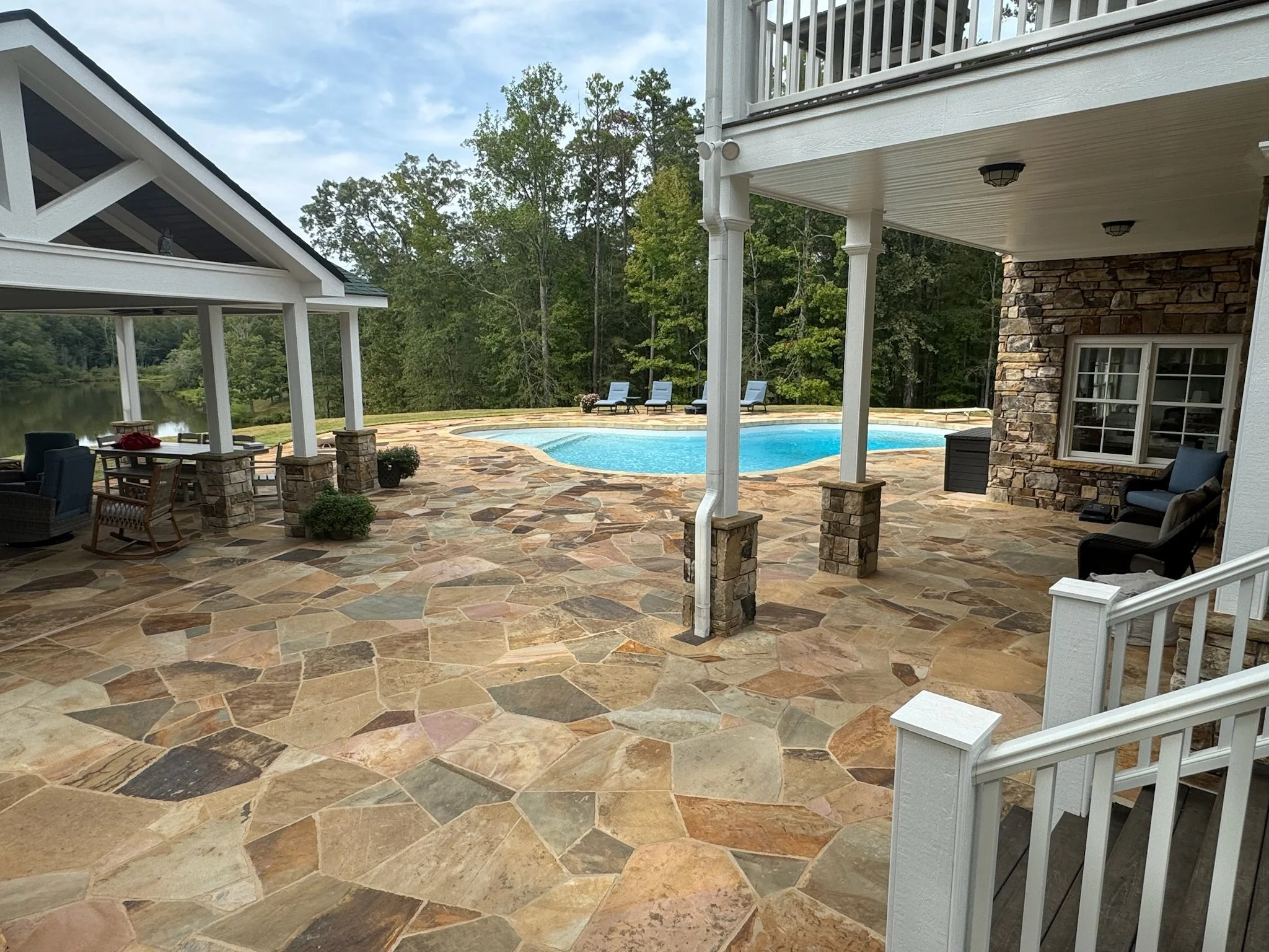 Custom pool decking enhances the aesthetics and functionality of your pool area. Whether you prefer stone, wood, composite, or decorative concrete, the decking can be tailored to suit your style and complement your home’s architecture.